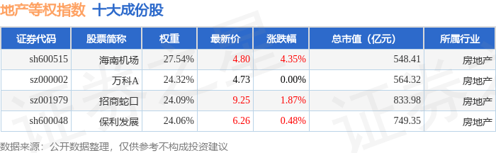 地产等权(399983)指数十大成份股详情如下: