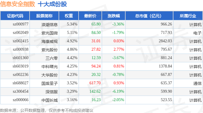 证券之星消息,1月19日,信息安全(399994)指数报收于1981.6点,跌1.52%,成交612.79亿元,换手率3.86%。当日该指数成份股中,上涨的有15家,北信源以3.26%的涨幅领涨,下跌的有45家,华胜天成以7.55%的跌幅领跌。