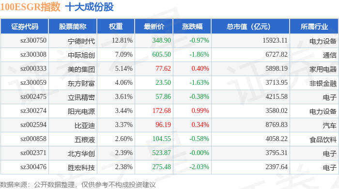 证券之星消息,1月19日,100ESGR(470027)指数报收于8322.65点,跌0.36%,成交2070.04亿元,换手率1.43%。当日该指数成份股中,上涨的有35家,潍柴动力以7.69%的涨幅领涨,下跌的有43家,智飞生物以7.19%的跌幅领跌。