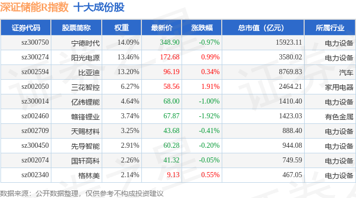 深证储能R(470036)指数十大成份股详情如下: