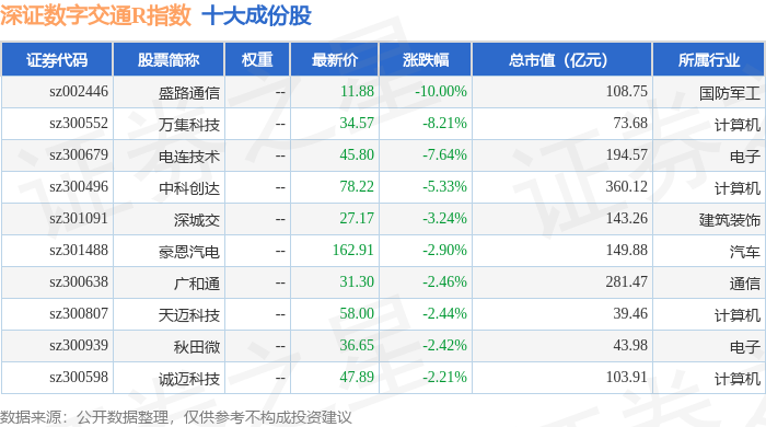 深证数字交通R(470049)指数十大成份股详情如下: