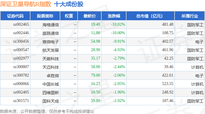 深证卫星导航R(470050)指数十大成份股详情如下: