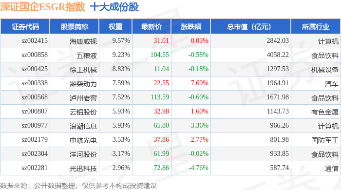 深证国企ESGR(470055)指数十大成份股详情如下: