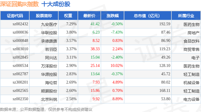 深证回购R(470063)指数十大成份股详情如下: