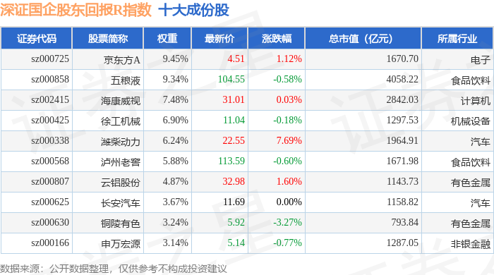 深证国企股东回报R(470064)指数十大成份股详情如下: