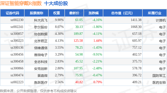 深证智能穿戴R(470074)指数十大成份股详情如下: