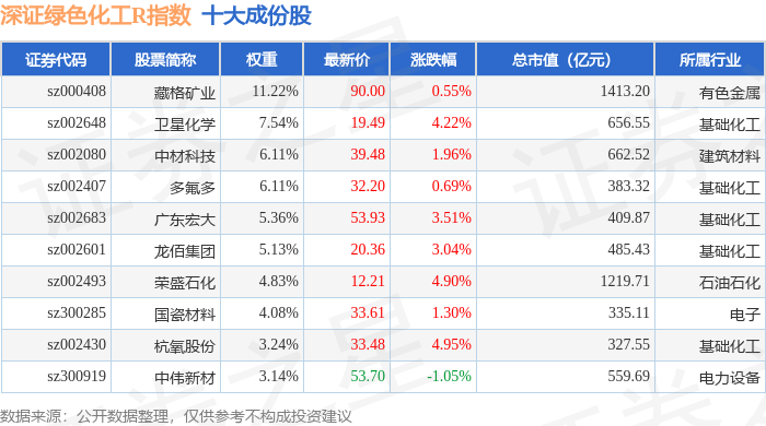 深证绿色化工R(470076)指数十大成份股详情如下: