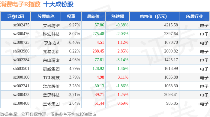 消费电子R(480030)指数十大成份股详情如下: