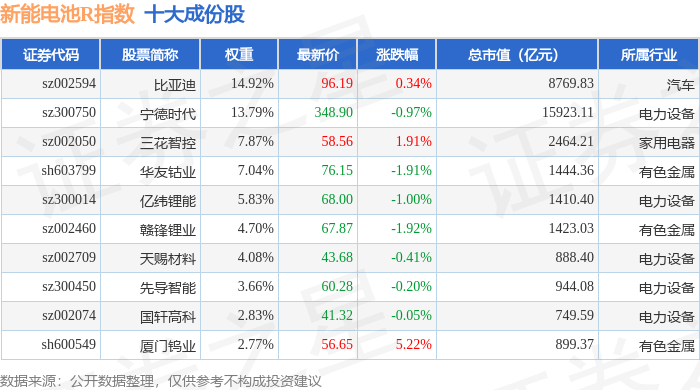 新能电池R(480032)指数十大成份股详情如下: