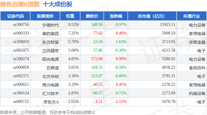 绿色治理R(480058)指数十大成份股详情如下: