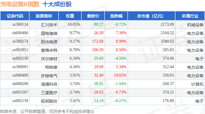 充电设施R(480077)指数十大成份股详情如下: