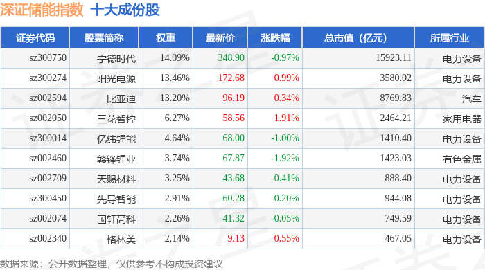 深证储能(970036)指数十大成份股详情如下: