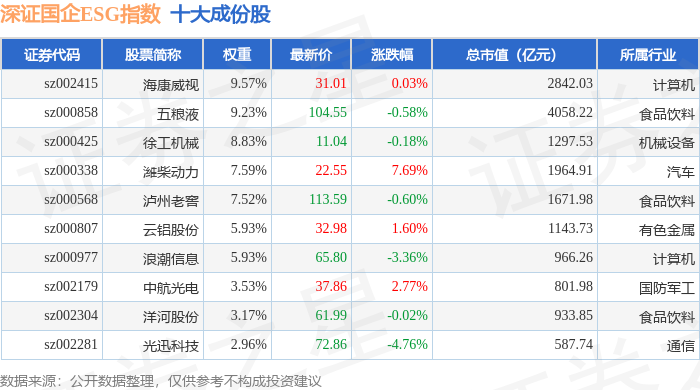 深证国企ESG(970055)指数十大成份股详情如下: