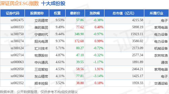 深证民企ESG(970056)指数十大成份股详情如下: