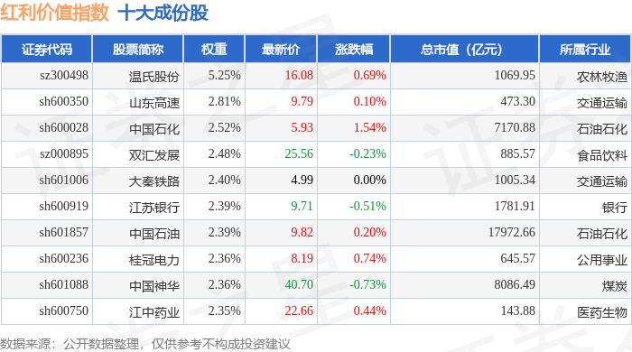 证券之星消息,1月19日,红利价值(980103)指数报收于3188.78点,涨0.42%,成交363.33亿元,换手率0.41%。当日该指数成份股中,上涨的有28家,三星医疗以6.73%的涨幅领涨,下跌的有16家,渝农商行以3.15%的跌幅领跌。