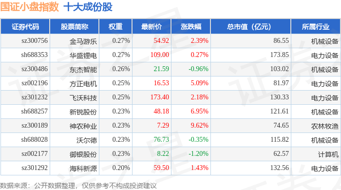 国证小盘(980202)指数十大成份股详情如下: