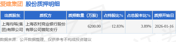 证券之星消息,爱建集团(600643)1月19日公开信息显示,股东上海均瑶(集团)有限公司向上海农村商业银行股份有限公司普陀支行合计质押6200.0万股,占总股本3.89%。质押详情见下表: