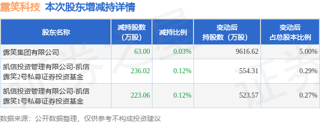 证券之星消息,1月19日露笑科技发布公告《露笑科技:关于持股5%以上股东及其一致行动人减持完成的公告》,其股东露笑集团有限公司、凯信投资管理有限公司-凯信露笑2号私募证券投资基金、凯信投资管理有限公司-凯信露笑1号私募证券投资基金于2025年12月27日至2026年1月16日间合计减持522.08万股,占公司目前总股本的0.2715%,变动期间该股股价上涨9.21%,截止1月16日收盘报8.66元。