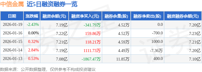 中信金属融资融券信息显示,融资方面,当日融资买入4518.2万元,融资偿还4859.99万元,融资净偿还341.79万元。融券方面,融券卖出1000.0股,融券偿还1000.0股,融券余量4.52万股,融券余额68.93万元。融资融券余额7.2亿元。