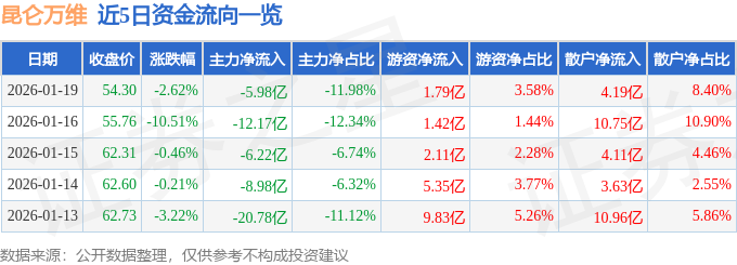 1月19日的资金流向数据方面,主力资金净流出5.98亿元,占总成交额11.98%,游资资金净流入1.79亿元,占总成交额3.58%,散户资金净流入4.19亿元,占总成交额8.4%。