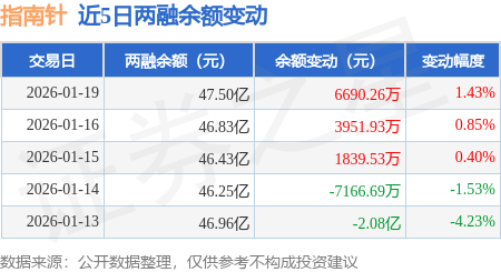 证券之星消息,1月19日,指南针(300803)融资买入3.79亿元,融资偿还3.12亿元,融资净买入6699.87万元,融资余额47.36亿元,近3个交易日已连续净买入累计1.27亿元。