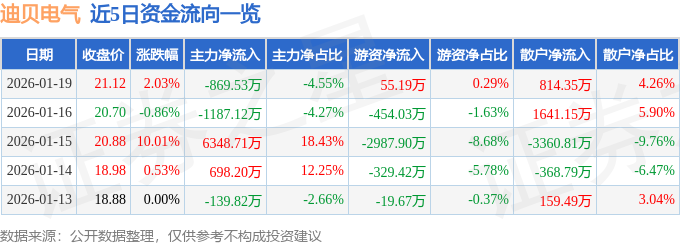 1月19日的资金流向数据方面,主力资金净流出869.53万元,占总成交额4.55%,游资资金净流入55.19万元,占总成交额0.29%,散户资金净流入814.35万元,占总成交额4.26%。
