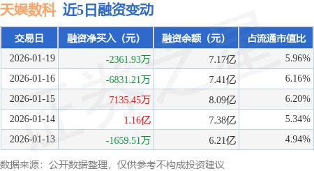 证券之星消息,1月19日,天娱数科(002354)融资买入9695.35万元,融资偿还1.21亿元,融资净卖出2361.93万元,融资余额7.17亿元。