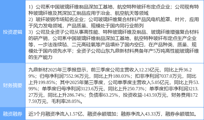 证券之星消息,九鼎新材1月20日涨停收盘,收盘价13.94元。该股于9点31分涨停,7次打开涨停,截止收盘封单资金为6723.51万元,占其流通市值0.8%。