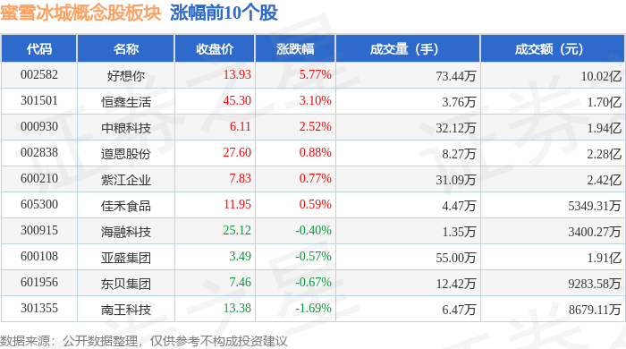 从资金流向上来看,当日蜜雪冰城概念股板块主力资金净流入6350.3万元,游资资金净流入1547.86万元,散户资金净流出7898.16万元。蜜雪冰城概念股板块个股资金流向见下表: