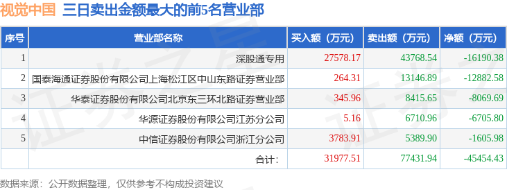 证券之星消息,沪深交易所2026年1月20日公布的交易公开信息显示,视觉中国(000681)因连续三个交易日内,跌幅偏离值累计达到20%的证券登上龙虎榜。此次是近5个交易日内第4次上榜。