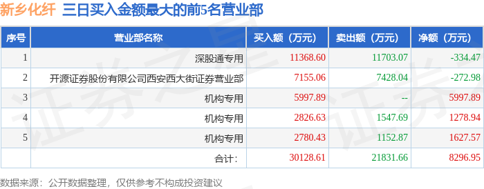 证券之星消息,沪深交易所2026年1月20日公布的交易公开信息显示,新乡化纤(000949)因连续三个交易日内,涨幅偏离值累计达到20%的证券登上龙虎榜。此次是近5个交易日内第1次上榜。
