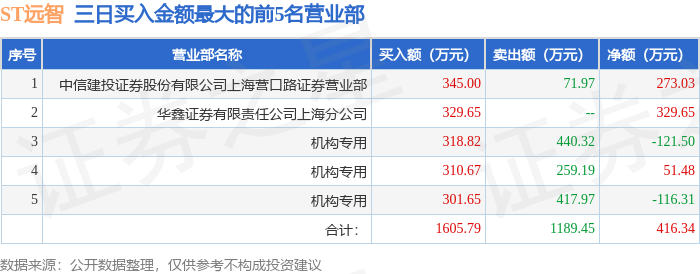 证券之星消息,沪深交易所2026年1月20日公布的交易公开信息显示,ST远智(002689)因连续三个交易日内,涨幅偏离值累计达到12%的ST证券、*ST证券和未完成股改证券登上龙虎榜。此次是近5个交易日内第1次上榜。