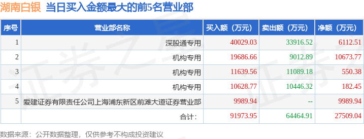 从龙虎榜公布的当日买卖数据来看,机构合计净买入8082.69万元,北向资金合计净买入6112.51万元。消闲派等知名游资榜上有名。(知名游资消闲派一般指爱建证券有限责任公司上海浦东新区前滩大道证券营业部席位,根据市场资料整理,仅供参考)