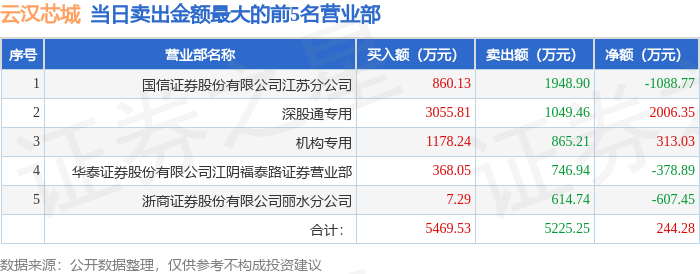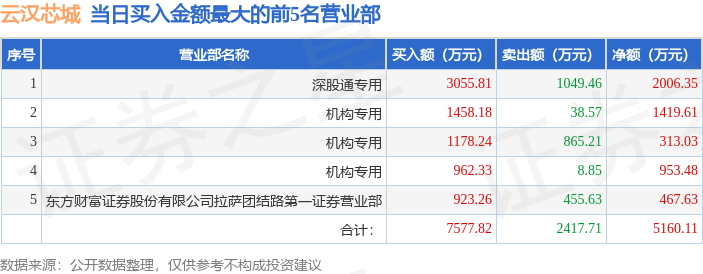 证券之星消息,沪深交易所2026年1月20日公布的交易公开信息显示,云汉芯城(301563)因日换手率达到30%的前5只证券登上龙虎榜。此次是近5个交易日内第2次上榜。