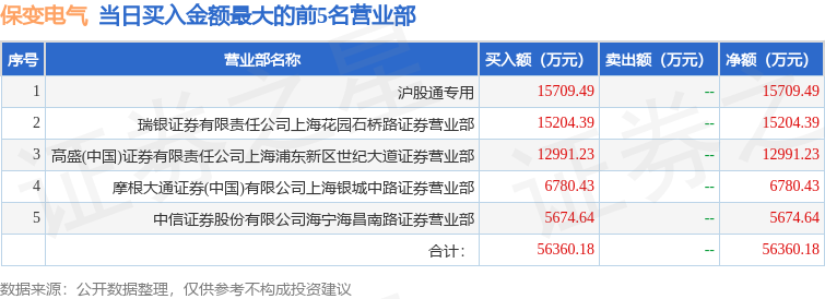 证券之星消息,沪深交易所2026年1月20日公布的交易公开信息显示,保变电气(600550)因有价格涨跌幅限制的日换手率达到20%的前五只证券登上龙虎榜。此次是近5个交易日内第2次上榜。