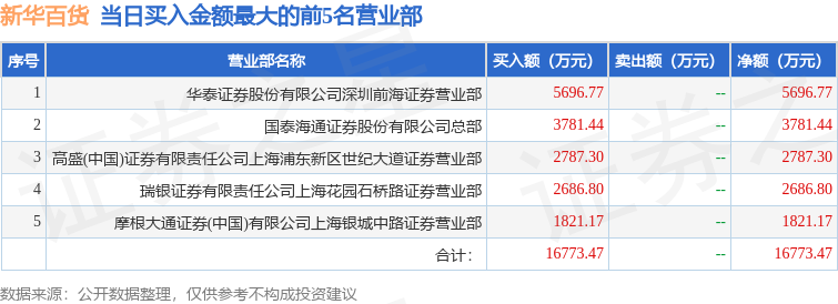 证券之星消息,沪深交易所2026年1月20日公布的交易公开信息显示,新华百货(600785)因有价格涨跌幅限制的日价格振幅达到15%的前五只证券,有价格涨跌幅限制的日换手率达到20%的前五只证券登上龙虎榜。此次是近5个交易日内第3次上榜。