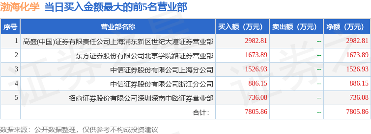 证券之星消息,沪深交易所2026年1月20日公布的交易公开信息显示,渤海化学(600800)因有价格涨跌幅限制的日价格振幅达到15%的前五只证券,非ST、*ST和S证券连续三个交易日内收盘价格涨幅偏离值累计达到20%的证券登上龙虎榜。此次是近5个交易日内第1次上榜。