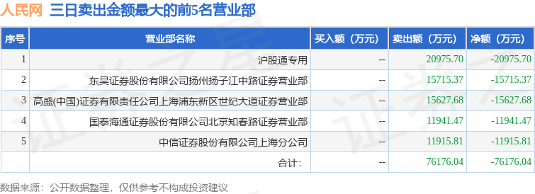 证券之星消息,沪深交易所2026年1月20日公布的交易公开信息显示,人民网(603000)因非ST、*ST和S证券连续三个交易日内收盘价格跌幅偏离值累计达到20%的证券登上龙虎榜。此次是近5个交易日内第2次上榜。