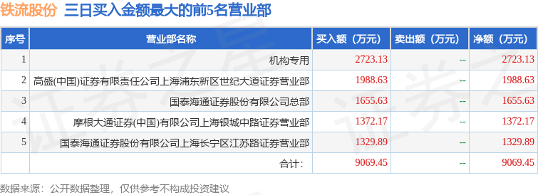 从龙虎榜公布的三日买卖数据来看,机构合计净买入2723.13万元。章盟主、一瞬流光等知名游资榜上有名。(知名游资章盟主一般指国泰海通证券股份有限公司上海长宁区江苏路证券营业部席位、知名游资章盟主一般指国泰海通证券股份有限公司上海长宁区江苏路证券营业部席位、知名游资一瞬流光一般指中泰证券股份有限公司湖北分公司席位,根据市场资料整理,仅供参考)