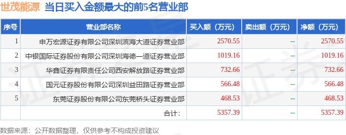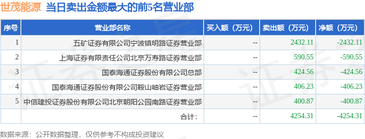 证券之星消息,沪深交易所2026年1月20日公布的交易公开信息显示,世茂能源(605028)因有价格涨跌幅限制的日收盘价格跌幅偏离值达到7%的前五只证券登上龙虎榜。此次是近5个交易日内第1次上榜。
