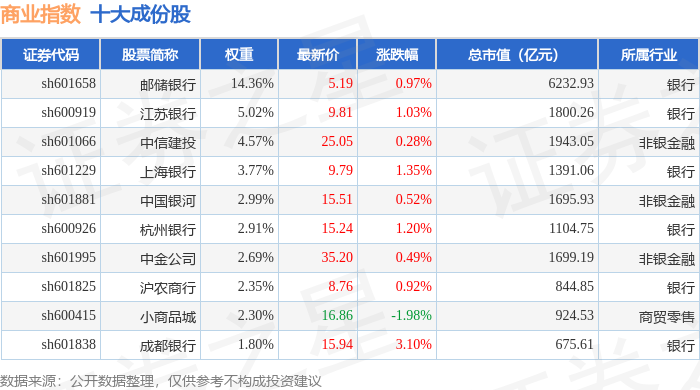 商业指数(000005)十大成份股详情如下: