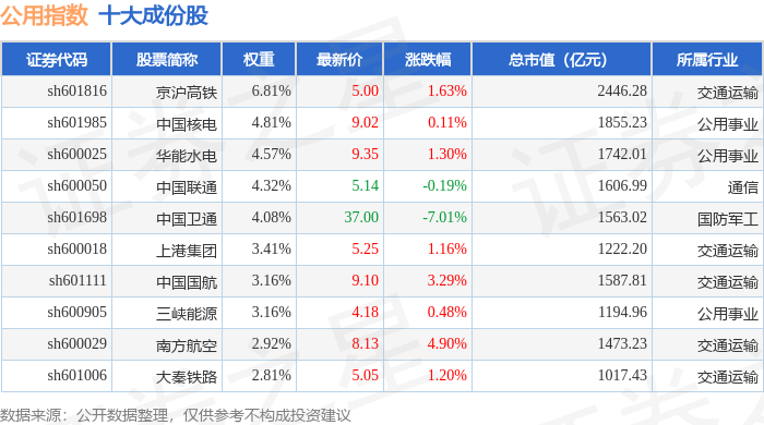 公用指数(000007)十大成份股详情如下: