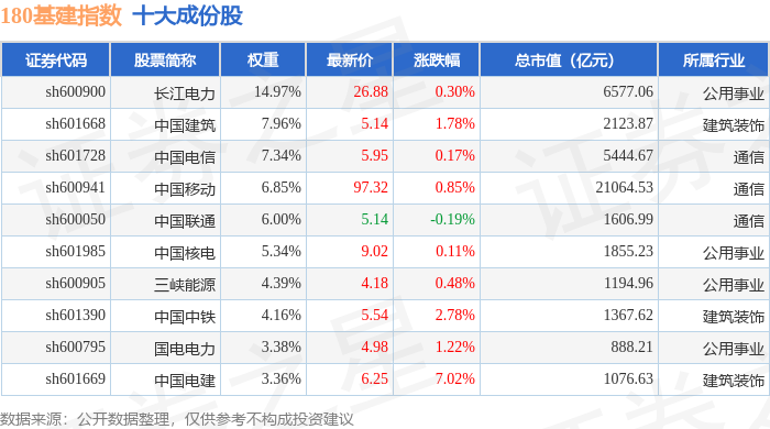 资金流向方面,180基建(000025)指数成份股当日主力资金净流入合计7.73亿元,游资资金净流出合计10.01亿元,散户资金净流入合计2.29亿元。成份股资金流向详情见下表: