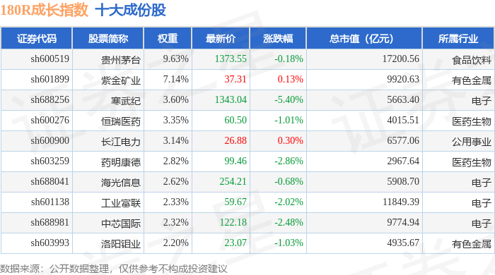 证券之星消息,1月20日,180R成长(000030)指数报收于2713.25点,跌0.33%,成交3168.34亿元,换手率1.22%。当日该指数成份股中,上涨的有83家,恒力石化以6.62%的涨幅领涨,下跌的有49家,中国卫通以7.01%的跌幅领跌。