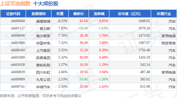 上证可选(000035)指数十大成份股详情如下: