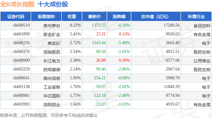 证券之星消息,1月20日,全R成长(000059)指数报收于3552.92点,跌0.6%,成交5757.06亿元,换手率1.98%。当日该指数成份股中,上涨的有159家,白银有色以10.03%的涨幅领涨,下跌的有213家,天通股份以9.98%的跌幅领跌。