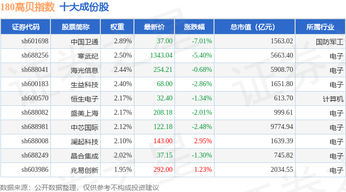 180高贝(000135)指数十大成份股详情如下: