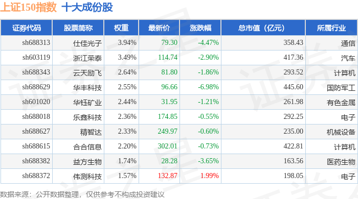 上证150(000133)指数十大成份股详情如下: