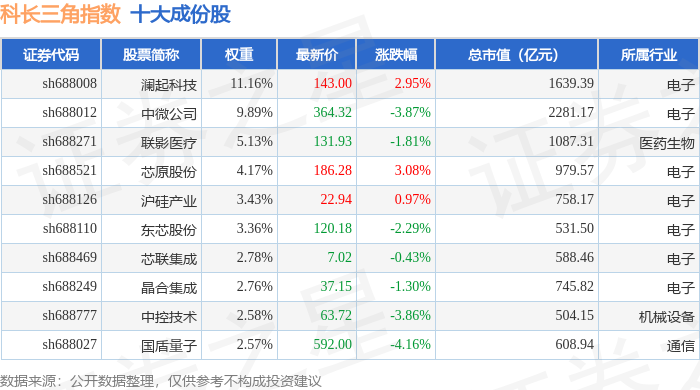 科长三角(000695)指数十大成份股详情如下: