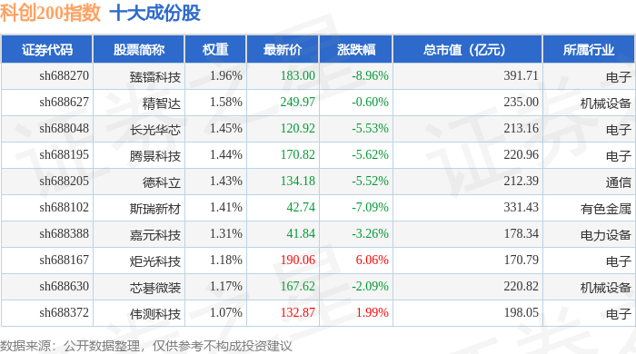 科创200(000699)指数十大成份股详情如下:
